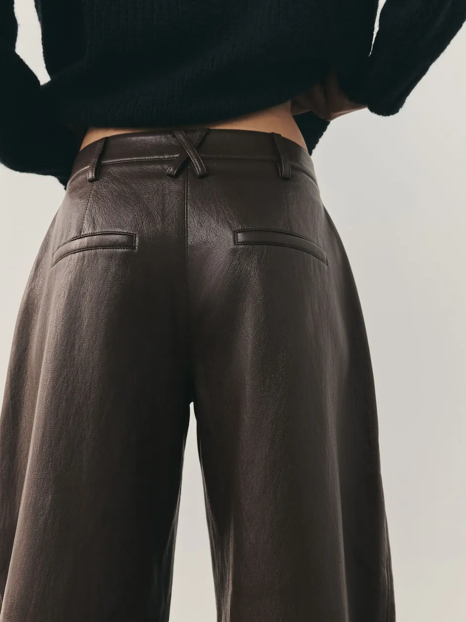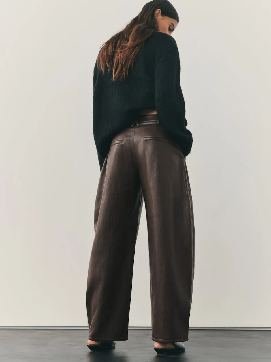 Nothing Ordinary Marron chocolat – Pantalon Regular en similicuir à jambe large New