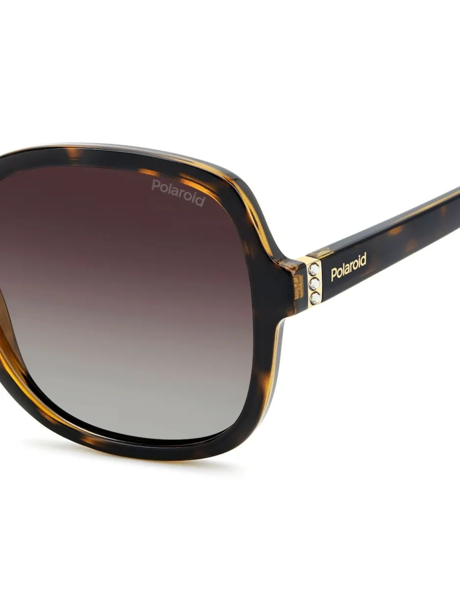 Polaroid Lunettes de soleil marron carrées ornées de bijoux Clearance