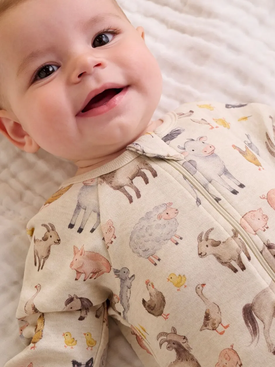 Purebaby Écru – Lot de 2 combinaisons zippées imprimées Hot