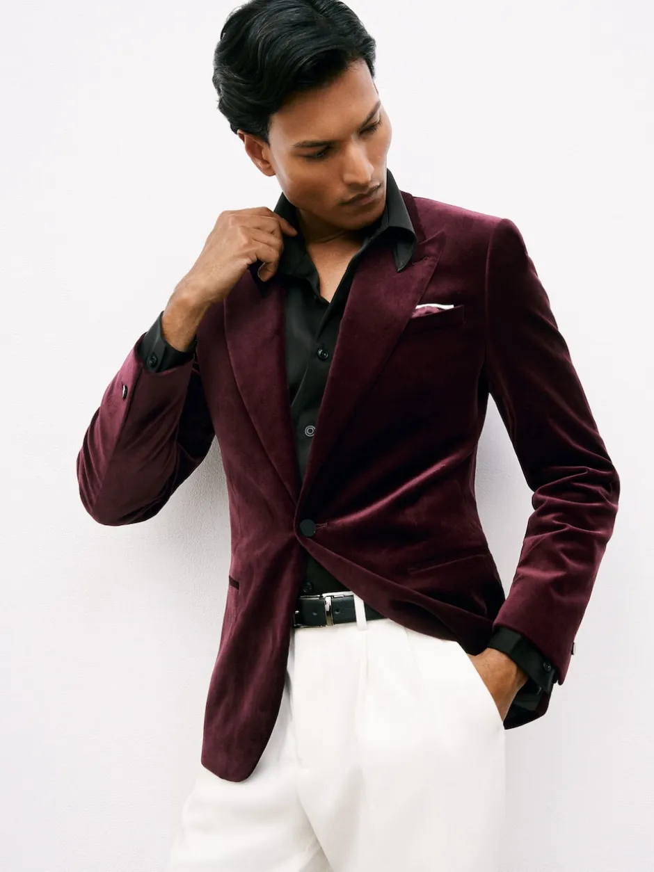 Reiss Bordeaux – Apsara Blazer en velours à boutonnage simple habillé Discount