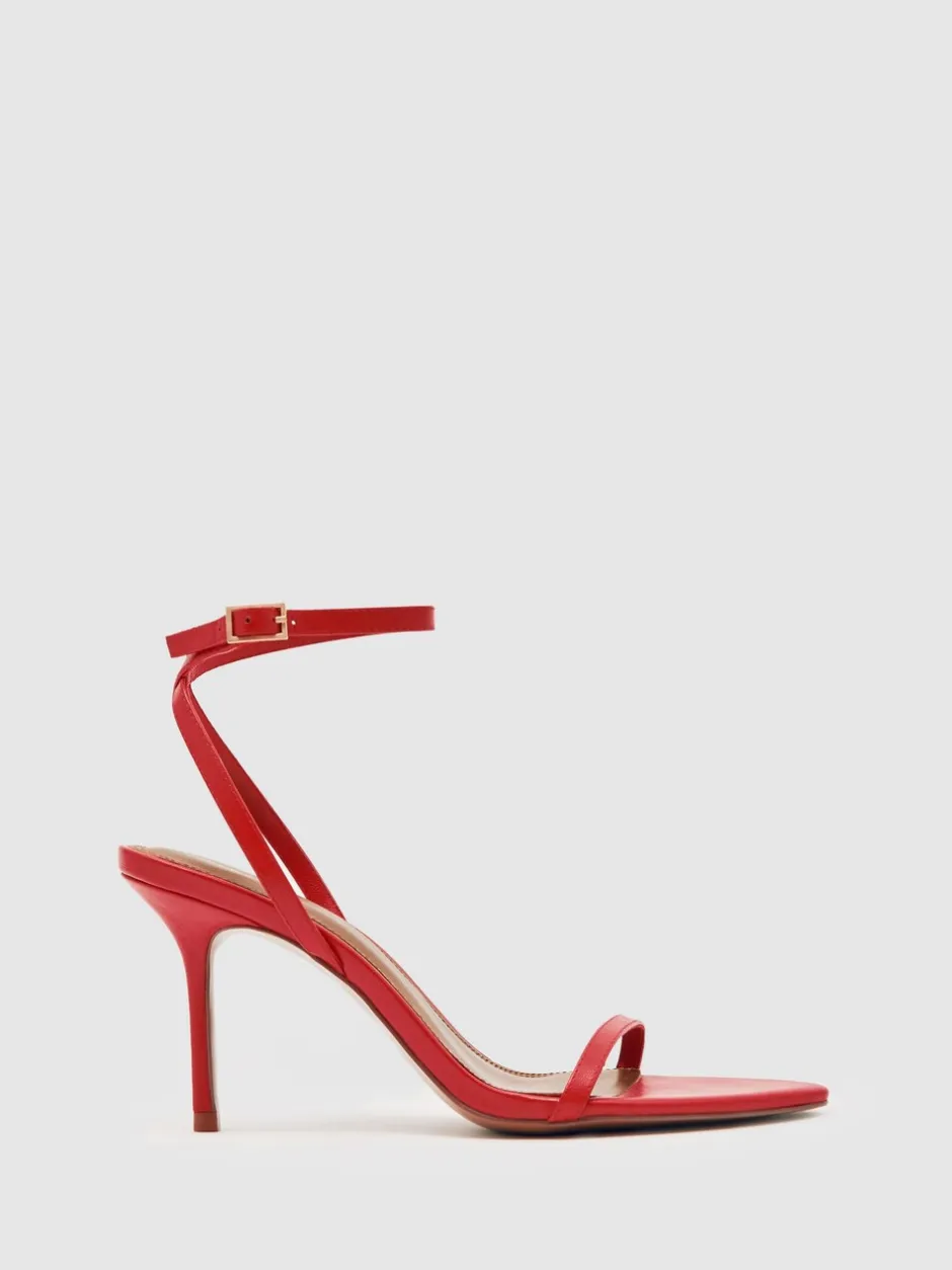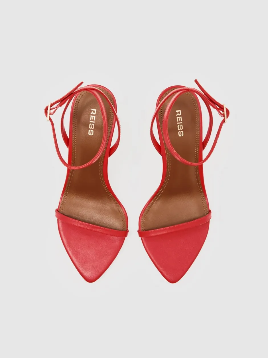 Reiss Cuir rouge – Sandales à talons aiguilles à bretelles Charlotte