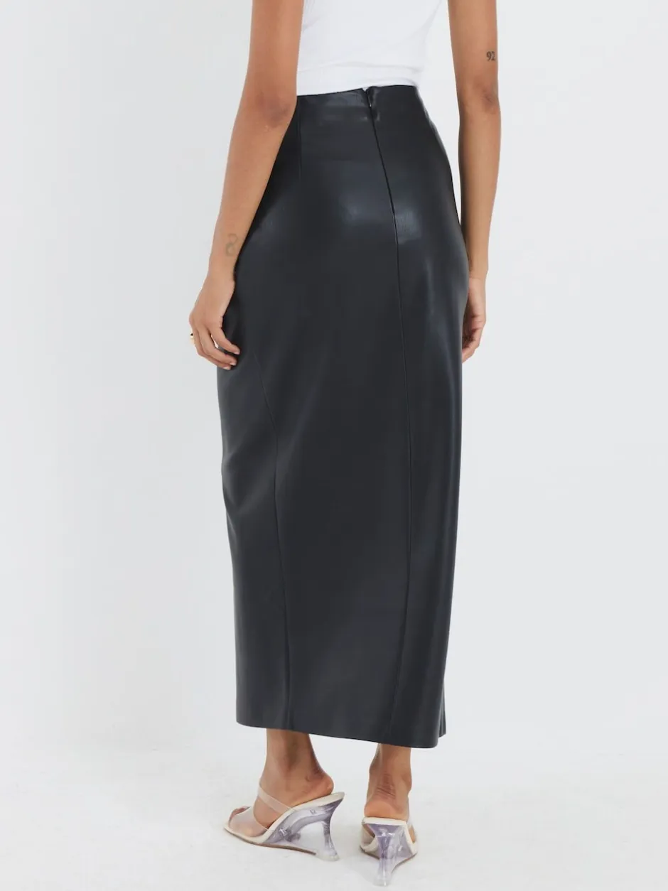 River Island Jupe mi-longue en similicuir à côtés torsadés Hot
