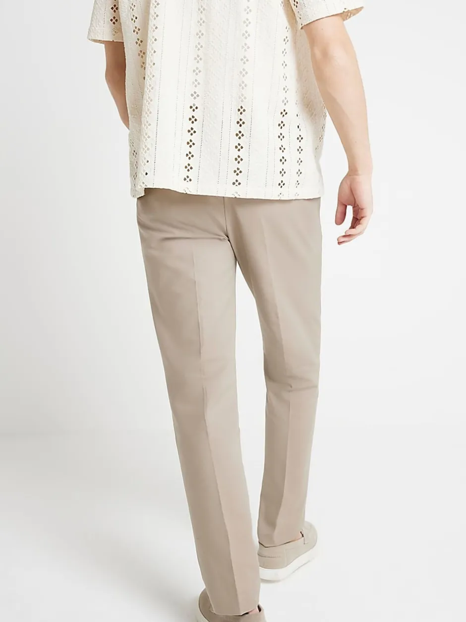 River Island Marron – Pantalon chino coupe fuselée avec boucles de ceinture