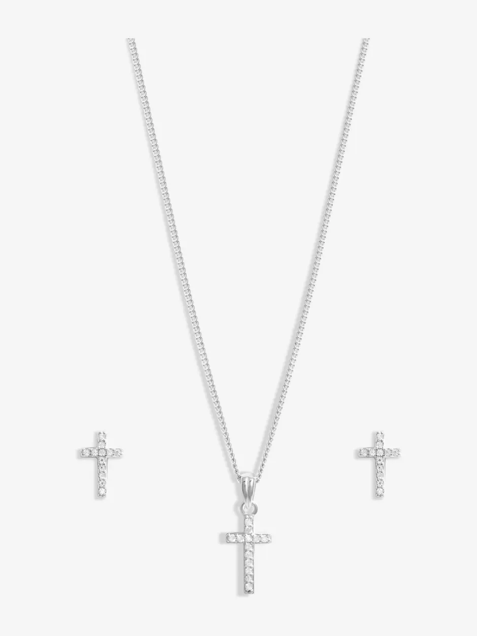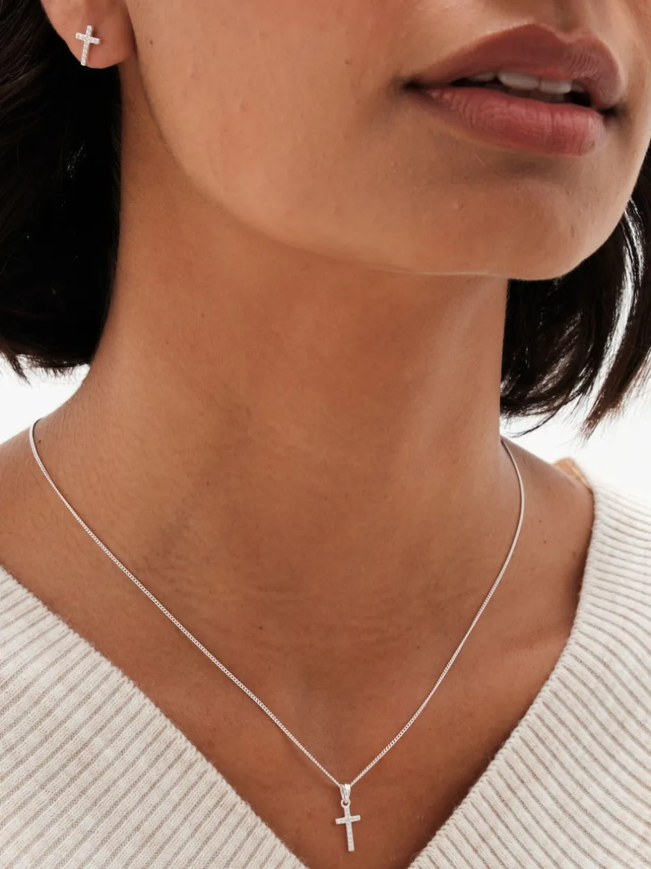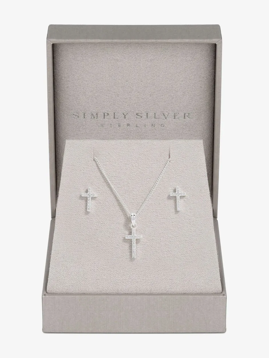 Simply Silver Tone 925 Croix en zircon cubique avec boîte cadeau Clearance