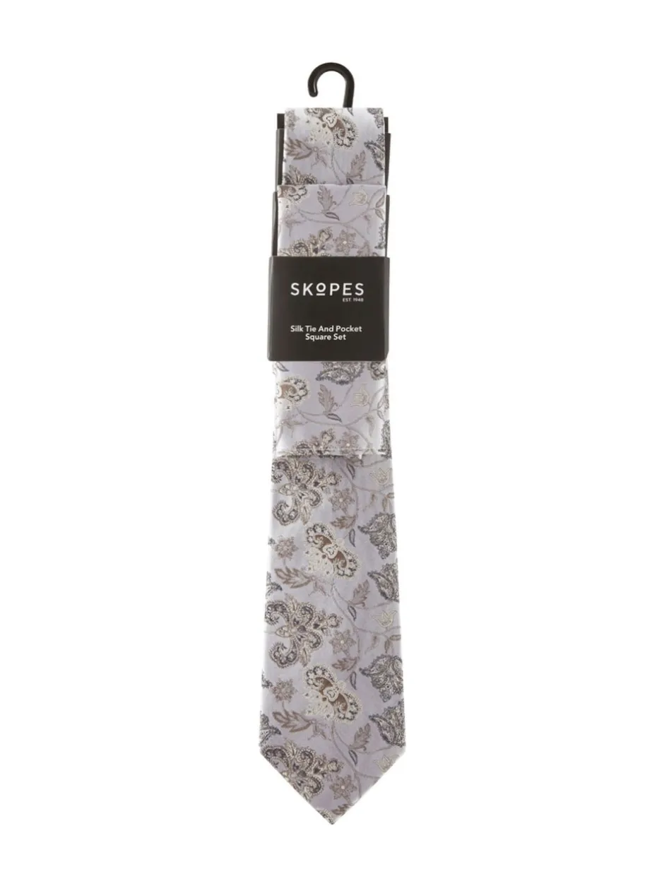 Skopes Ensemble cravate et mouchoir de poche fleuri en soie New
