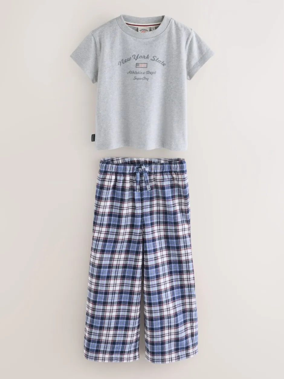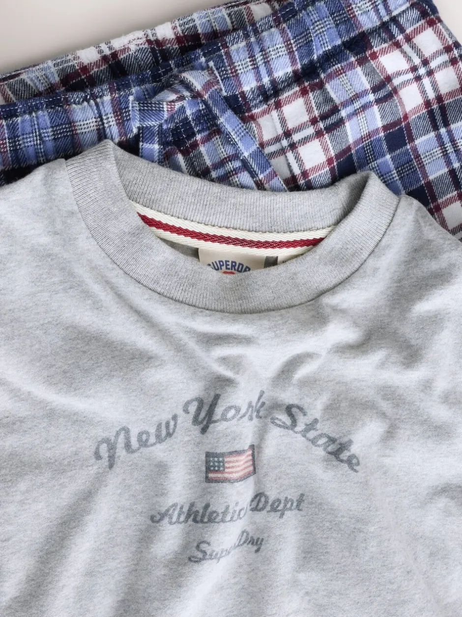 Superdry Gris – Ensemble t-shirt et pantalon à carreaux Best