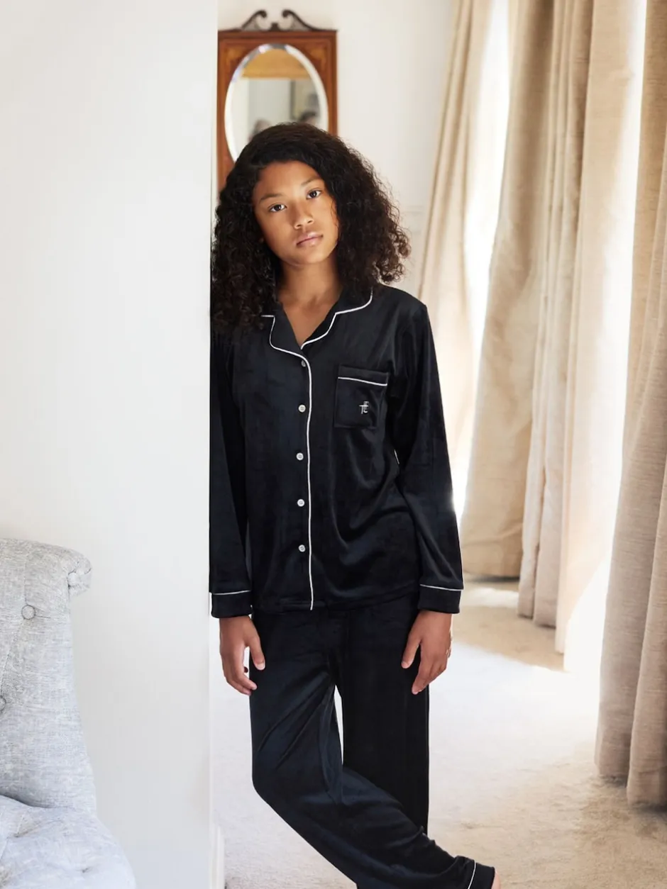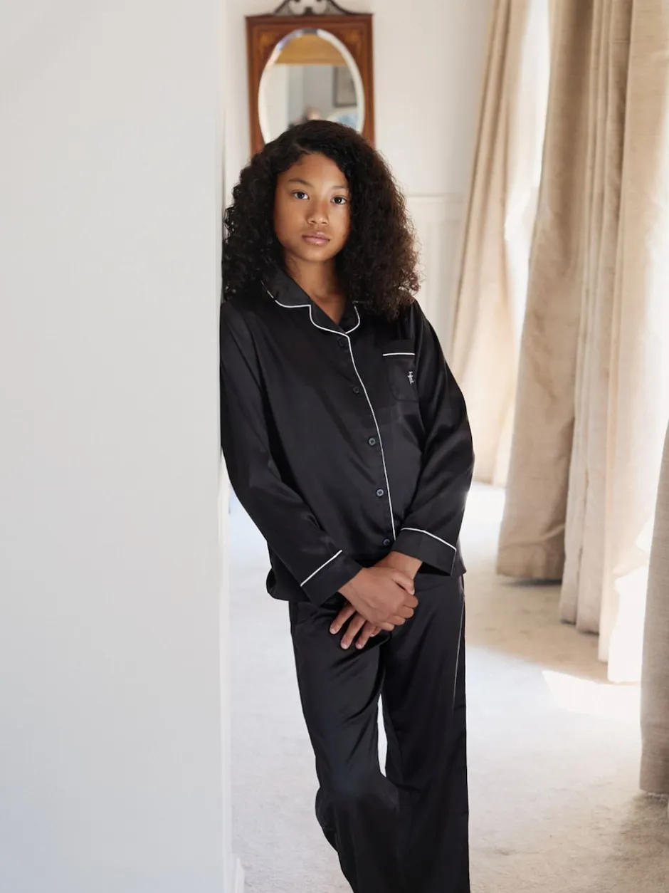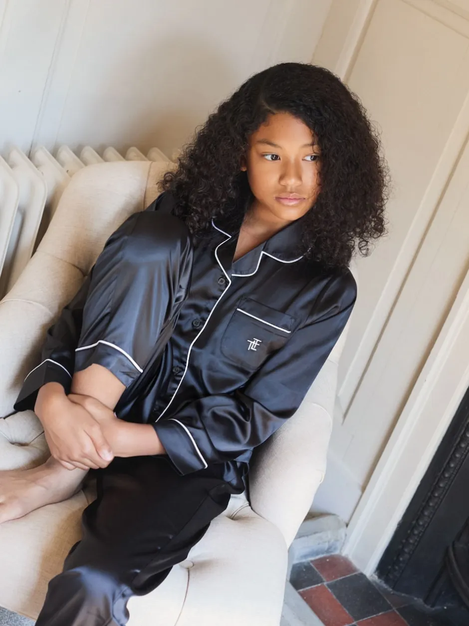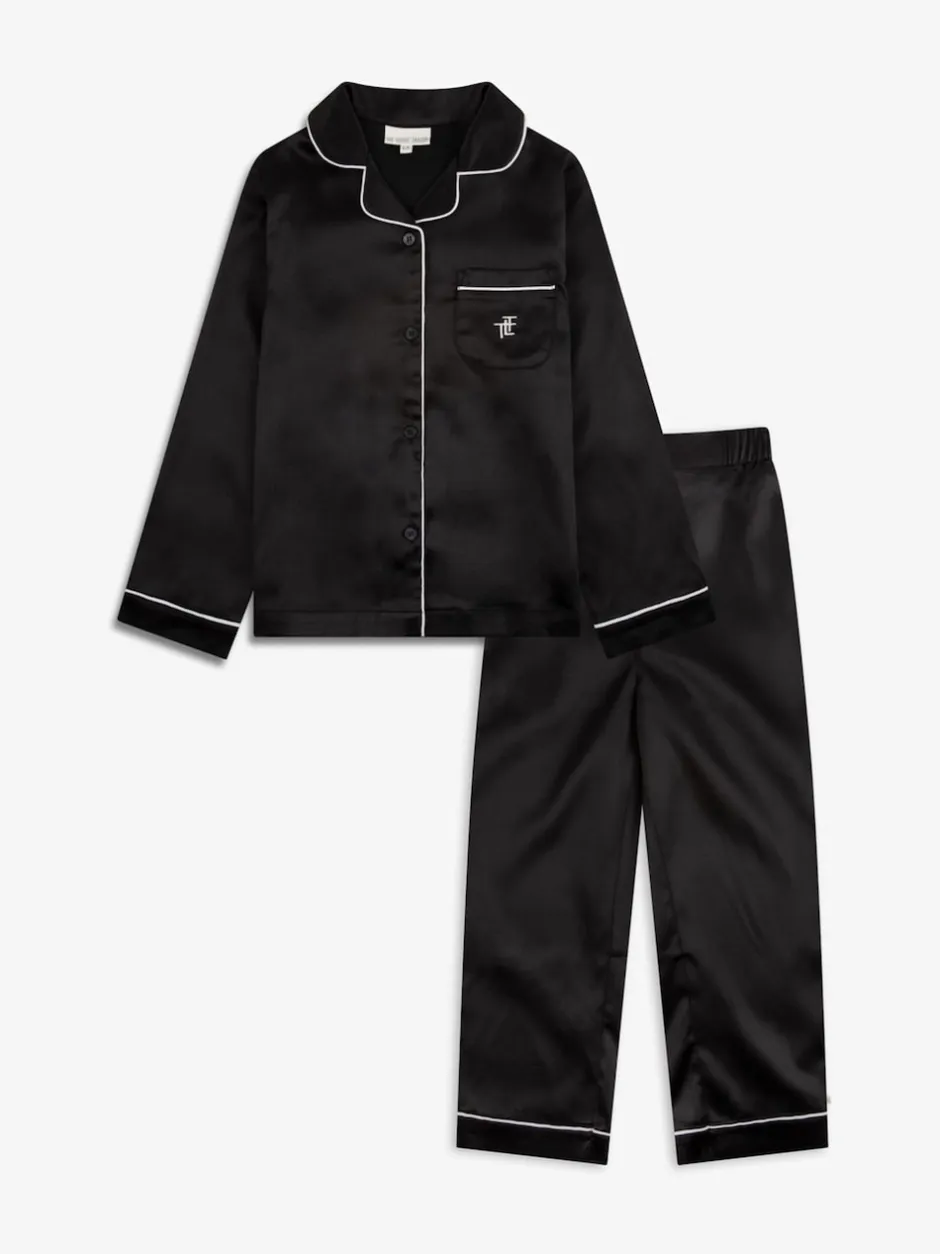The Little Tailor Noir – Pyjama de Noël boutonné en satin pour enfant New