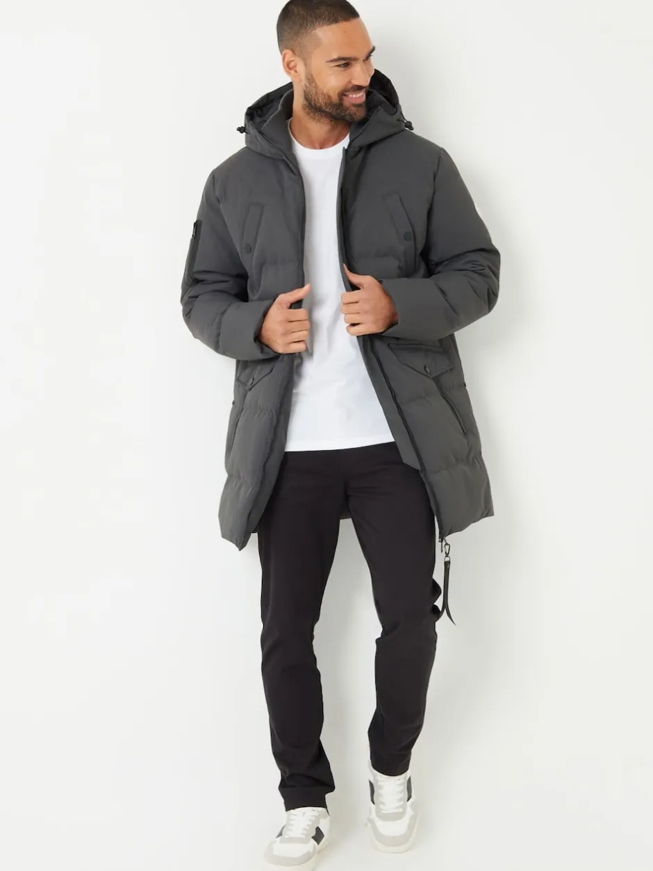 Threadbare Gris – Veste à capuche matelassée, imperméable et longue, de