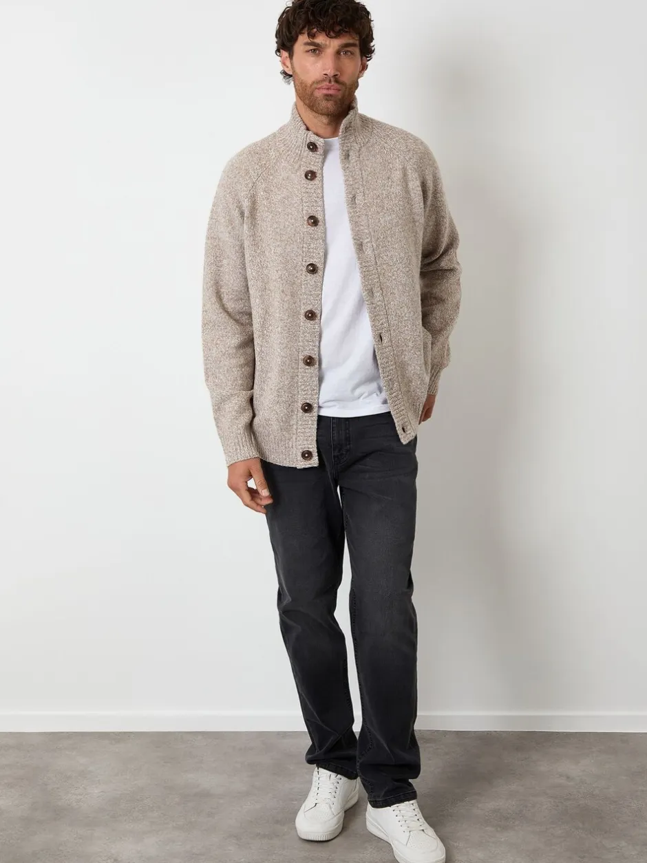 Threadbare Marron – Cardigan en maille boutonné à Col cheminée Online