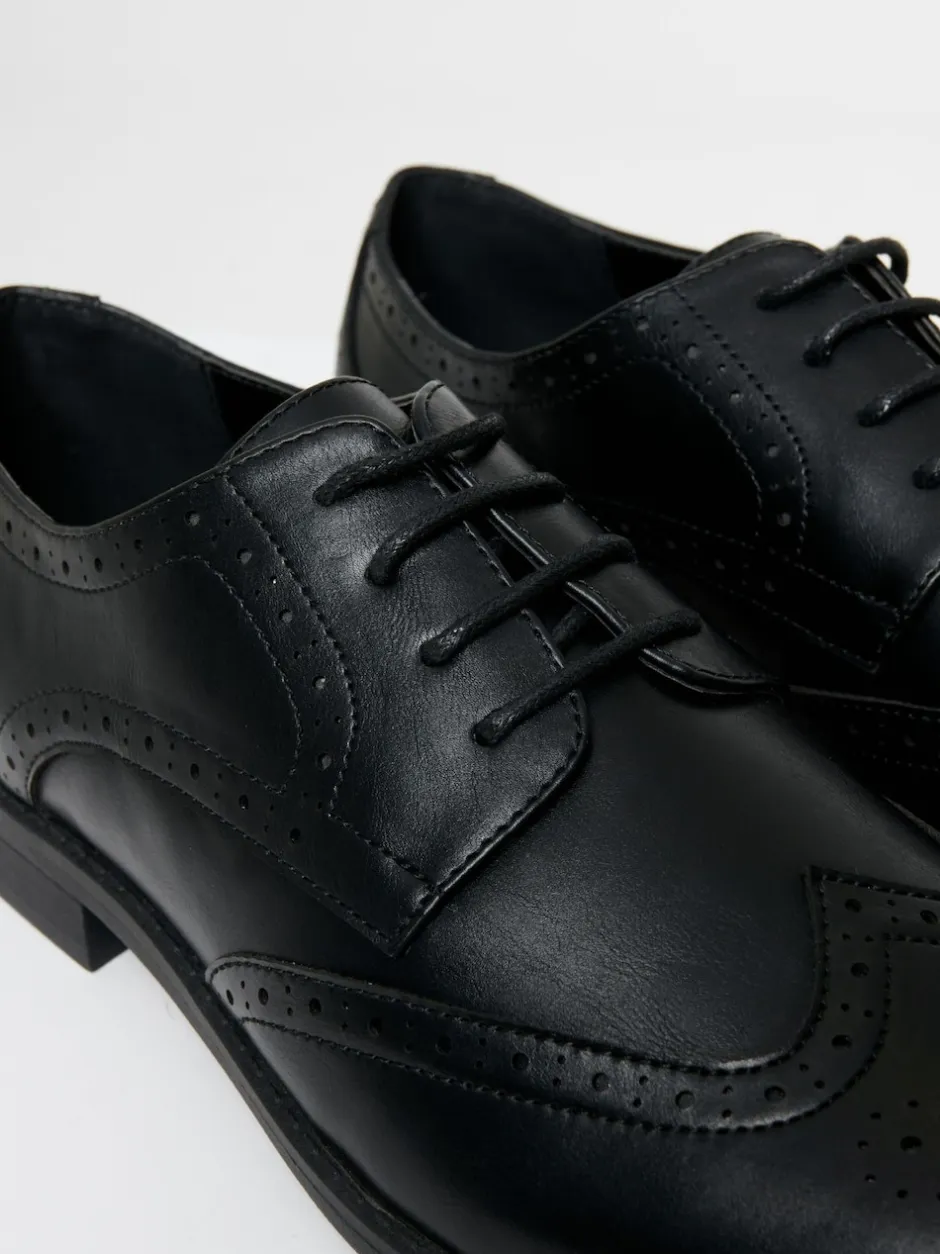 Threadbare Noir – Chaussures Richelieu imitation cuir Discount