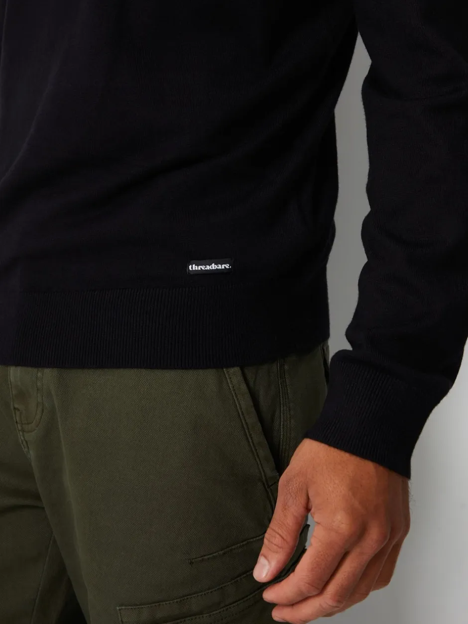 Threadbare – – Pull tricoté avec fermeture éclair à quart de tour et enton Noir Hot