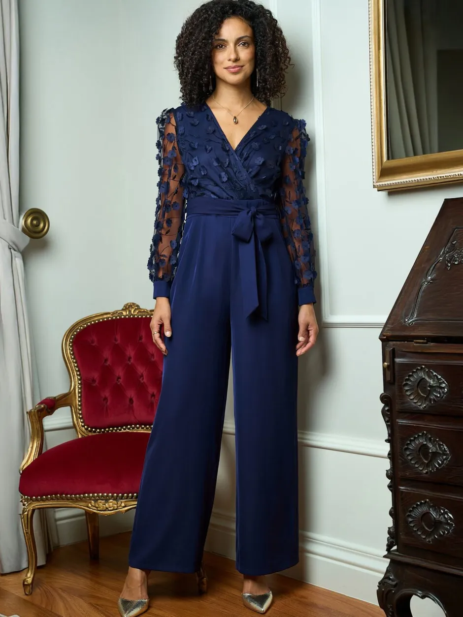 Friends Like These Bleu marine – Combinaison en mousseline à manches évasées Hot